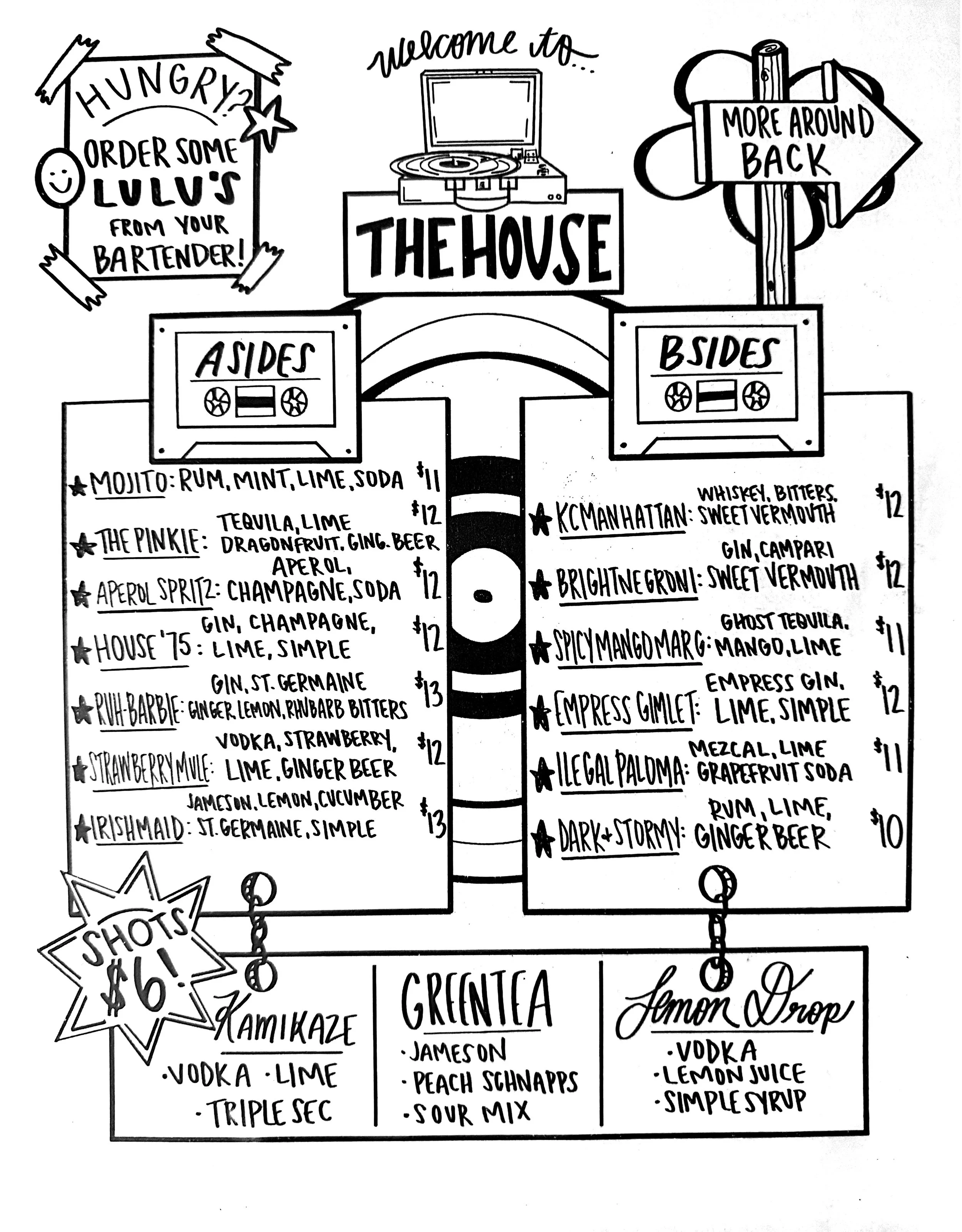The House was born from a love of laid-back nights, crackling vinyl, and good company. We serve drinks that don’t take themselves too seriously—from ice-cold domestics to thoughtfully crafted cocktails and frozen favorites.